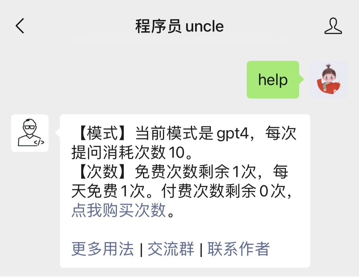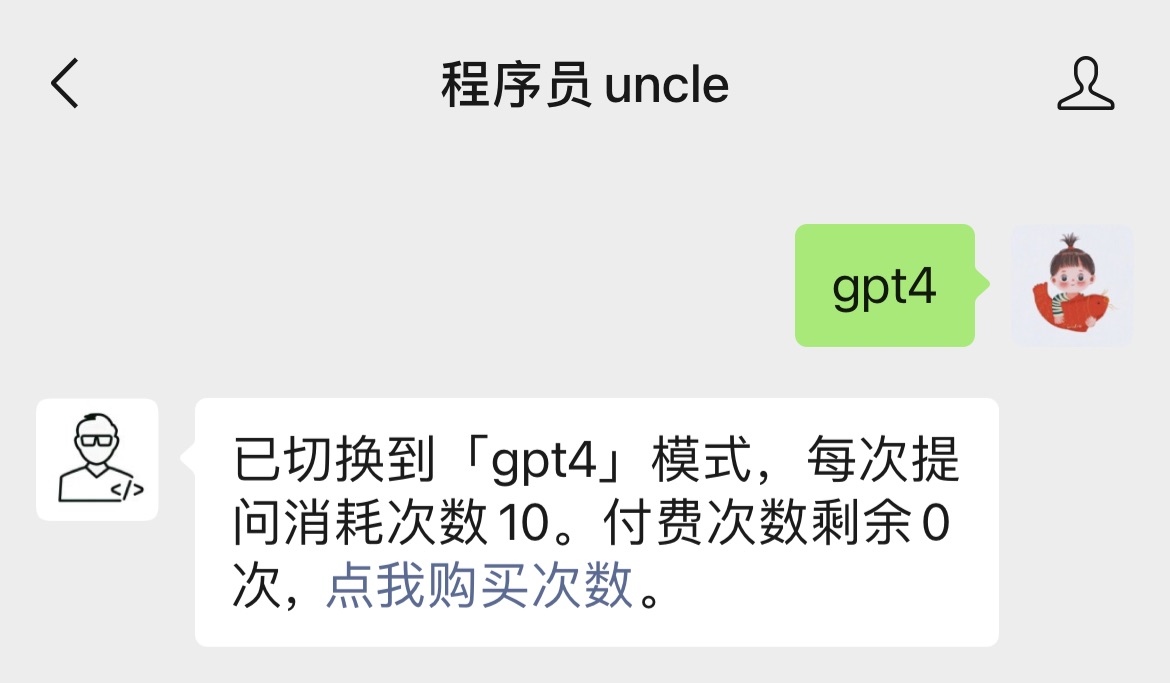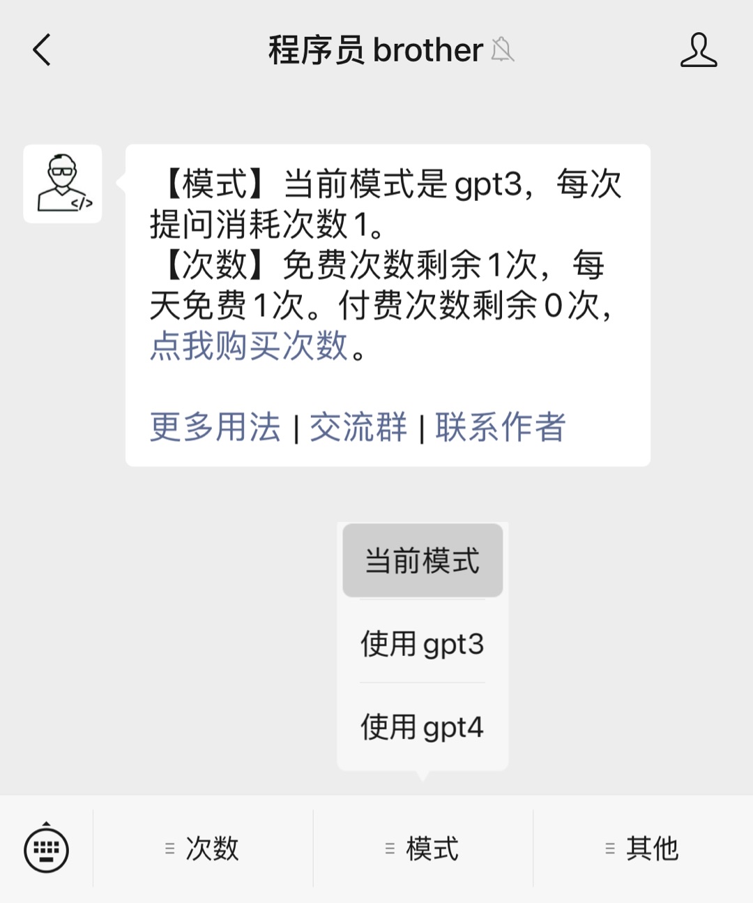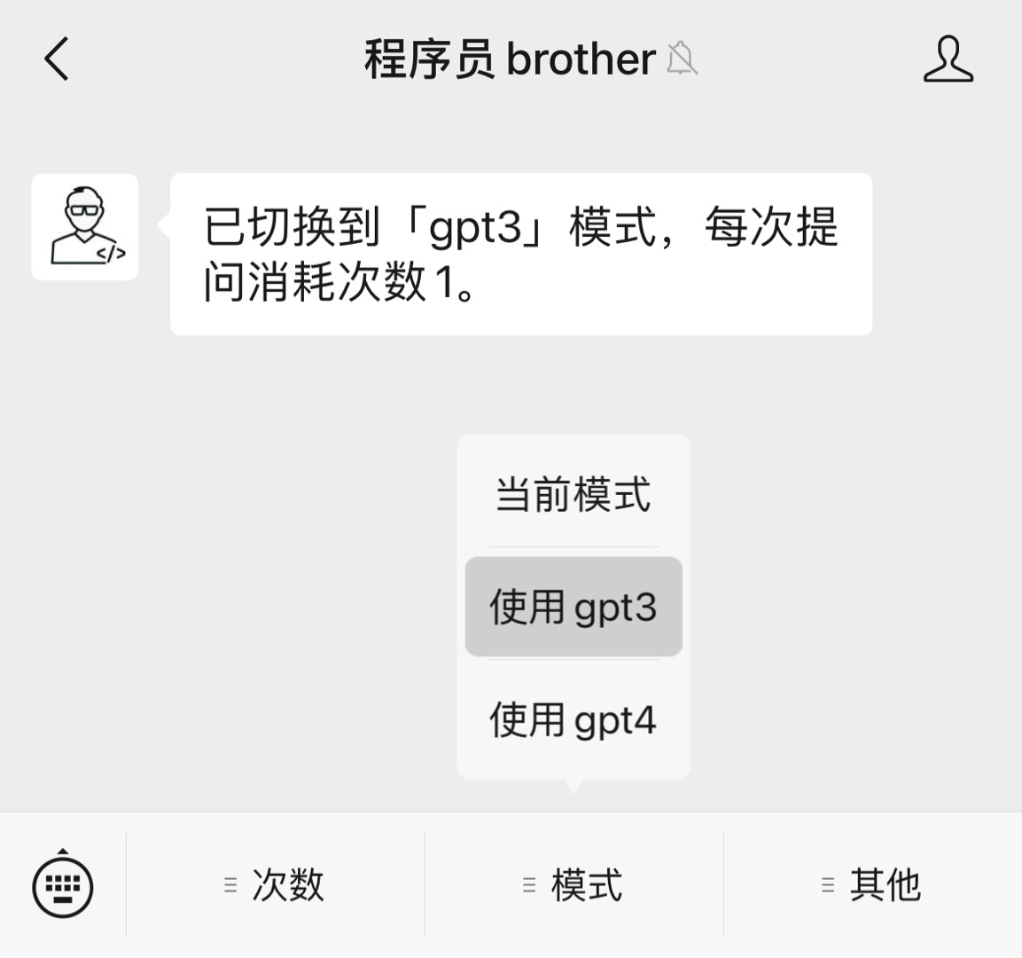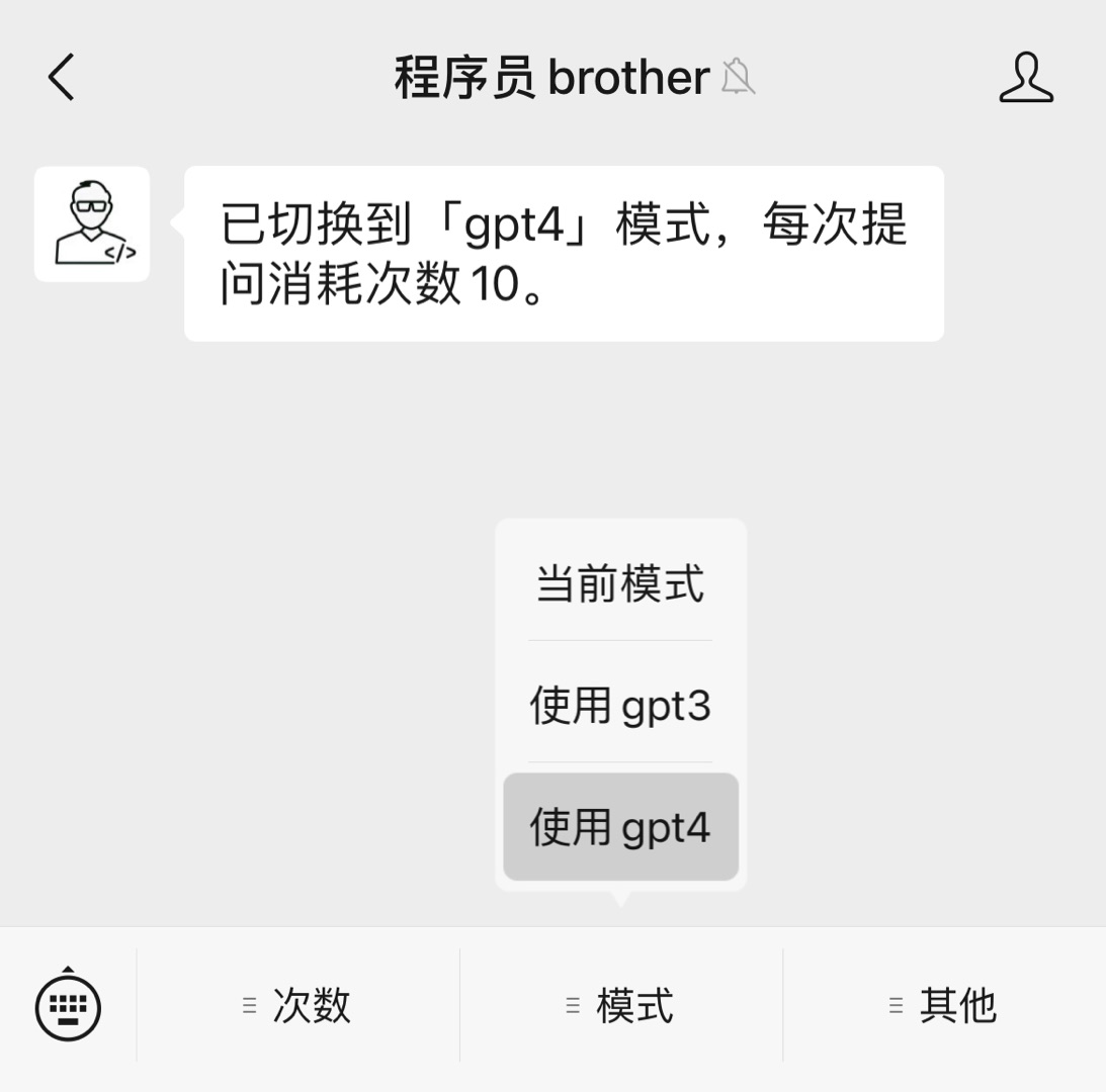默认使用 gpt3 模式,若要使用 gpt4,需要手动切换。注意,在 gpt4 模式下,每次提问消耗次数 5,且仅支持付费使用。